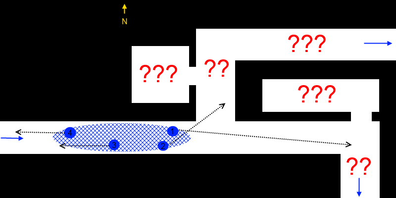 You want the most people where you're most likely to meet resistance, meaning at least two in the direction you're pushing. With three fronts, that leaves the center and tail to cover one front each, flank and rear respectively. At this point you're stretched pretty thin. You want to quickly turn it back into two fronts, and you do NOT want it to escalate into four. If it does, you are in deep shit. No two ways about it. Even with a full team, allowing you to watch all directions, anyone getting disabled even momentarily can and will spell disaster. I think the key is to group up at every fork, and make sure the coast is clear before checking side rooms, to avoid stuff like this: