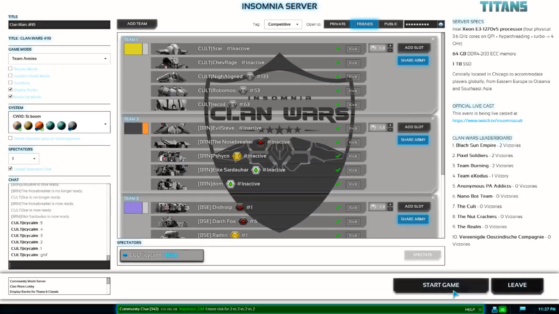 3. The leaders invite their players into the server, and wait until all of them have come in and taken their positions and chosen their commanders