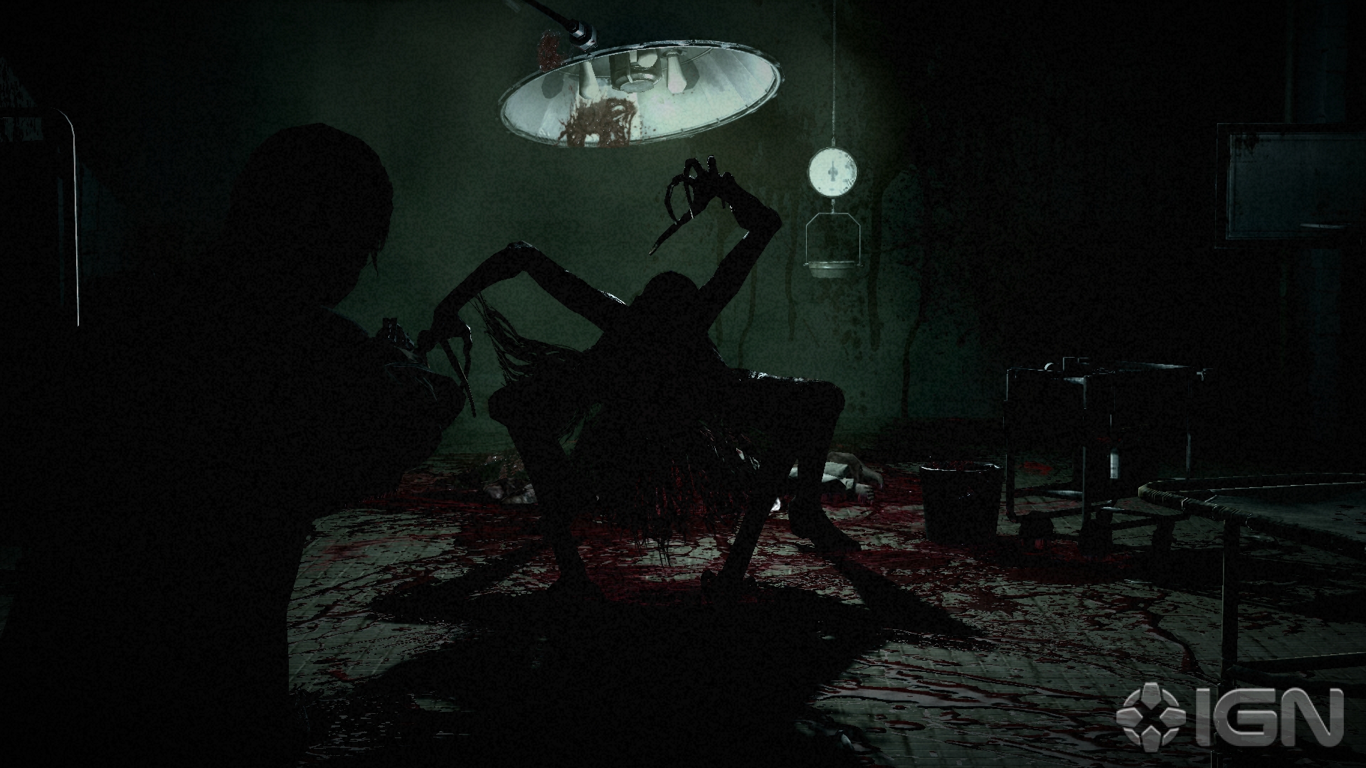 The player, who is controlling Castellanos, must free himself from the ropes and, switching back into the third-person view, sneakily steal a set of keys from the butcher and escape the asylum. These early moments in the game — which exhibit influences from other survival horror titles like Silent Hill — are tense and fear-inducing, especially when the player is chased by the butcher and has to hide inside lockers and behind walls in the hope of not being discovered. The suspense is compounded by the game's use of music and silence. In parts of the asylum, the rooms are so quiet that the player can only hear the character's footsteps.