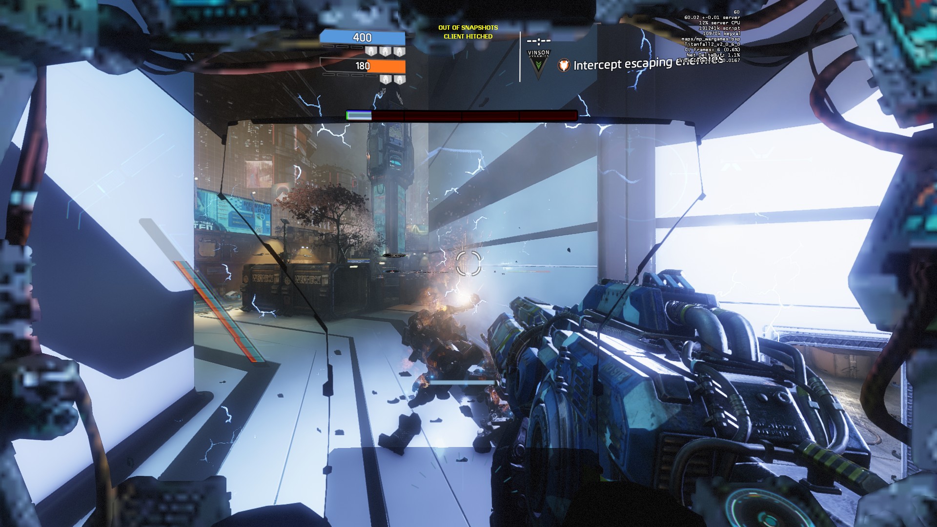 Wargames patch released. Everybody's favorite map is back. I hope all of the original maps come back this way. Great neon aesthetic with wide open lanes for titan duels with wallrunning routes overhead and both base buildings have pretty interesting layouts with a lot of entrances. I loved jumping through the windows at high speed and trying to clear out all the enemies, which wasn't very easy in the original version without the grapple. More settings are added to private matches and I had great fun playing 500% health CTF on this map. It works great even with the new titans and pilot movement abilities.