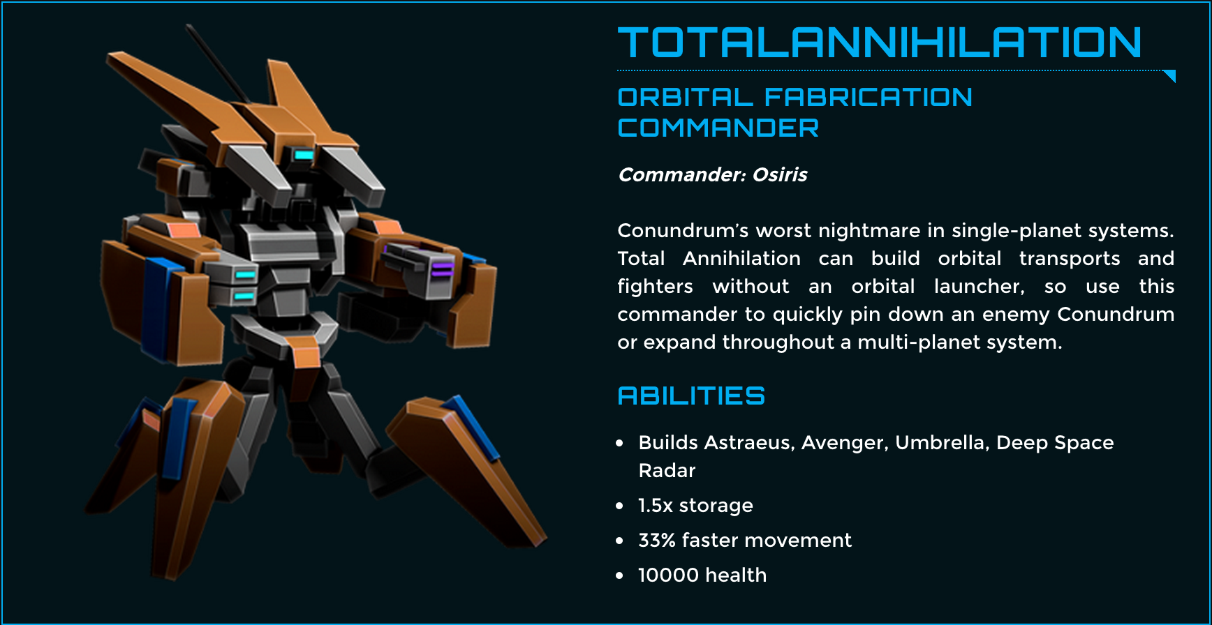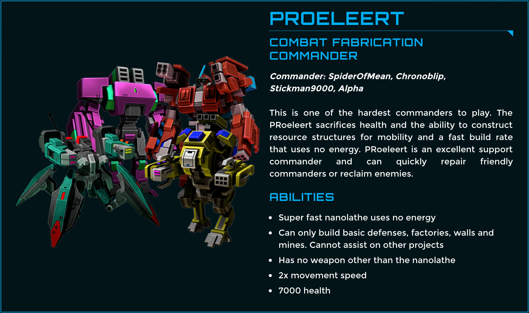 Buildable Units: Ant, Spinner, Dox, Grenadier, Combat Fabber, Slammer, Adv. Combat Fabber, t1 and t2 bot and vehicle fabbers