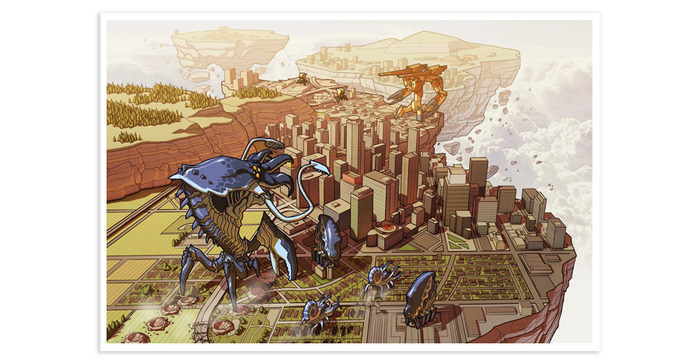 Randomly-generated terrain and cityscapes create new opportunities from battle to battle. A single game may encompass one or many Earthshards, crisscrossed by any number of human settlements. Unexpected bonus items lurk in randomly-generated structures throughout the battlefield, encouraging improvisation and risk-taking.