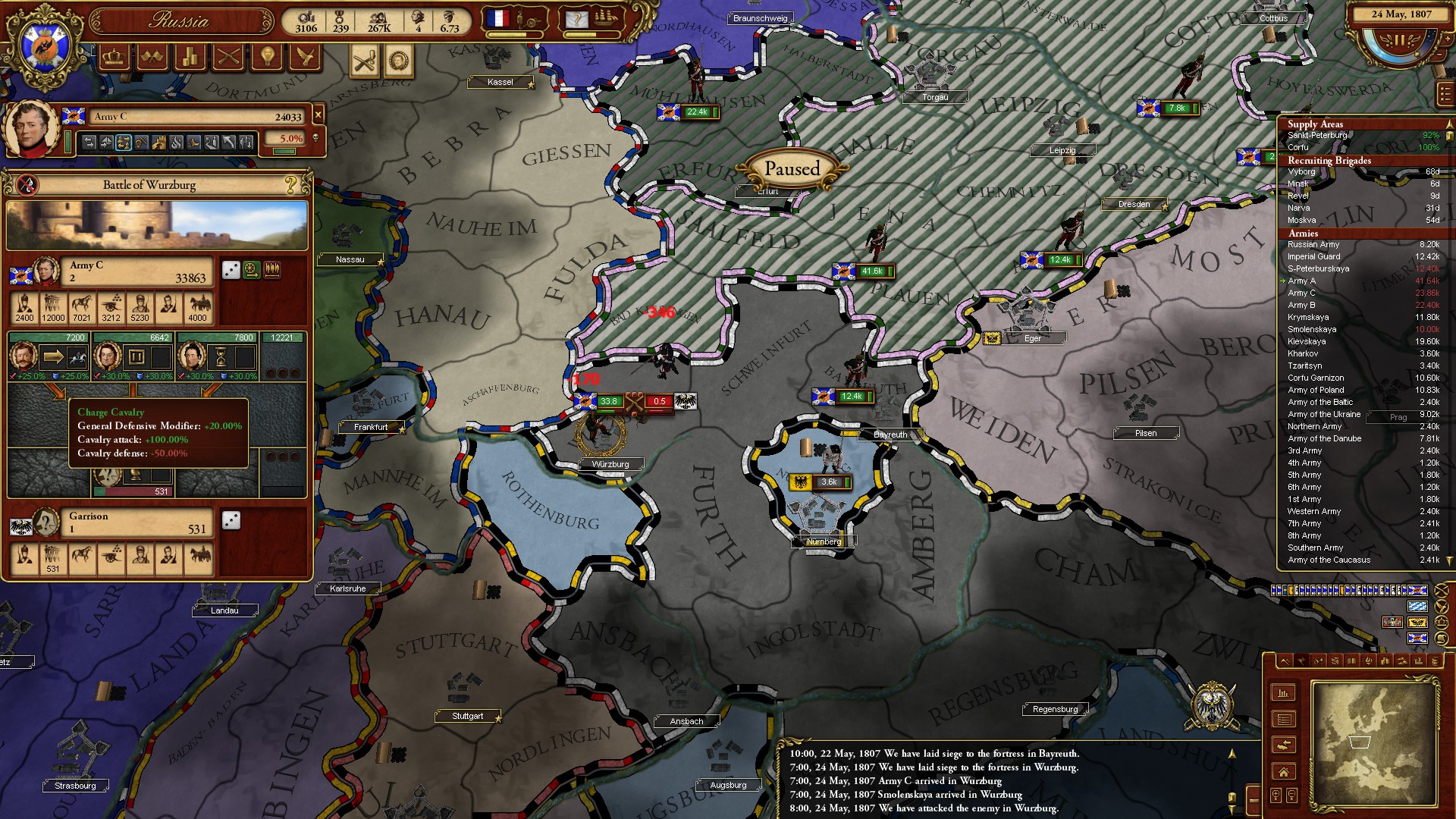 The wargame March of the Eagles is dedicated to the era 1805-1820 focused on the dramatic conflicts of Europe. March of the Eagles explores one of the defining periods in European history in an experience crafted by Paradox Development Studio, the masters of Grand Strategy and makers of Hearts of Iron and Europa Universalis. The Napoleonic War is brought to life in this war-focused strategy game.