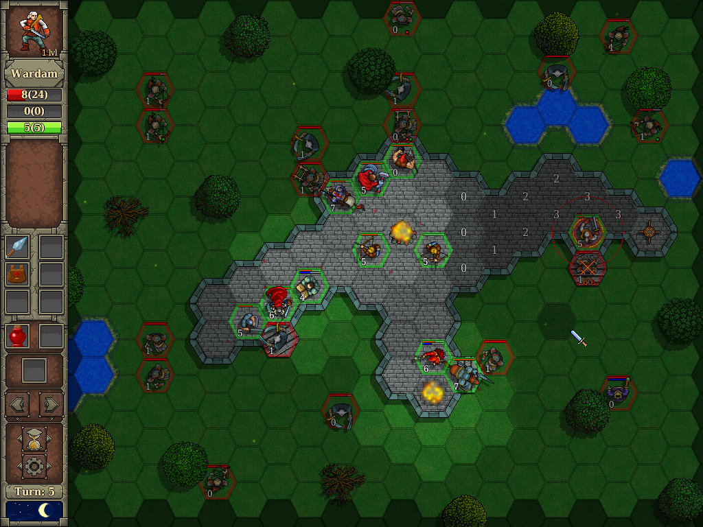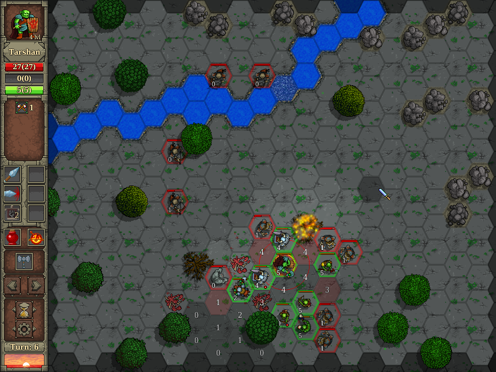 In the demo-version there are 4 missions for orc Tharshan and multiplayers (hotseat). The game supports English and Russian languages. Please, leave your comments here or on the forum of the official game site.