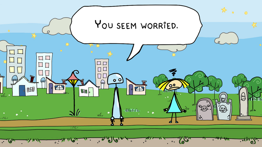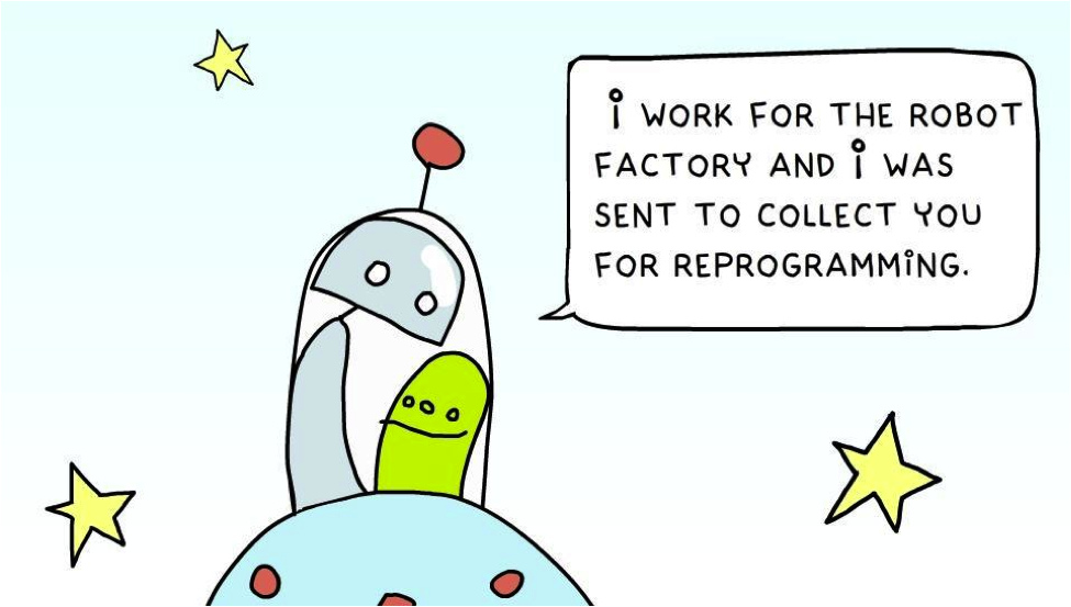 To make matters worse, an alien that looks like a green hot-dog, named Alien Jeff, finds you and gives you some bad news: It turns out your model is getting recalled and scrapped, because you apparently don’t have enough “humanity”… whatever that is.