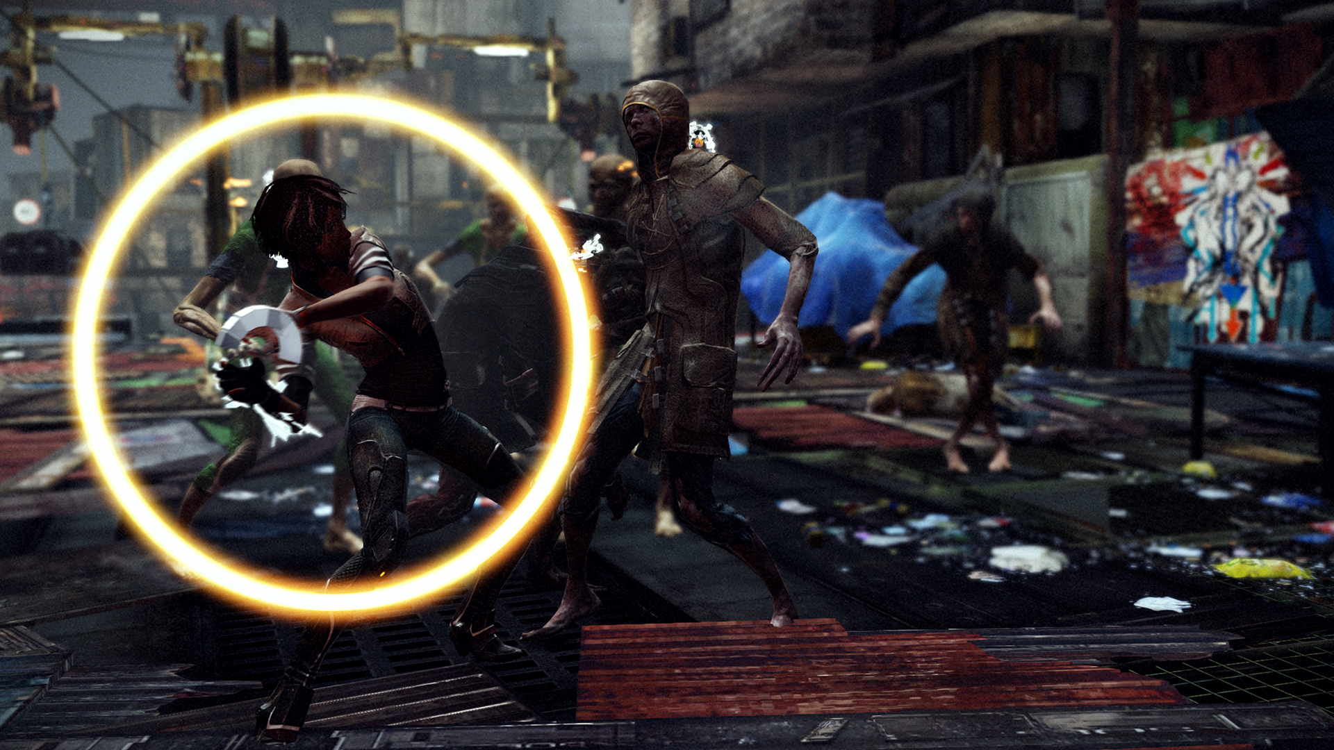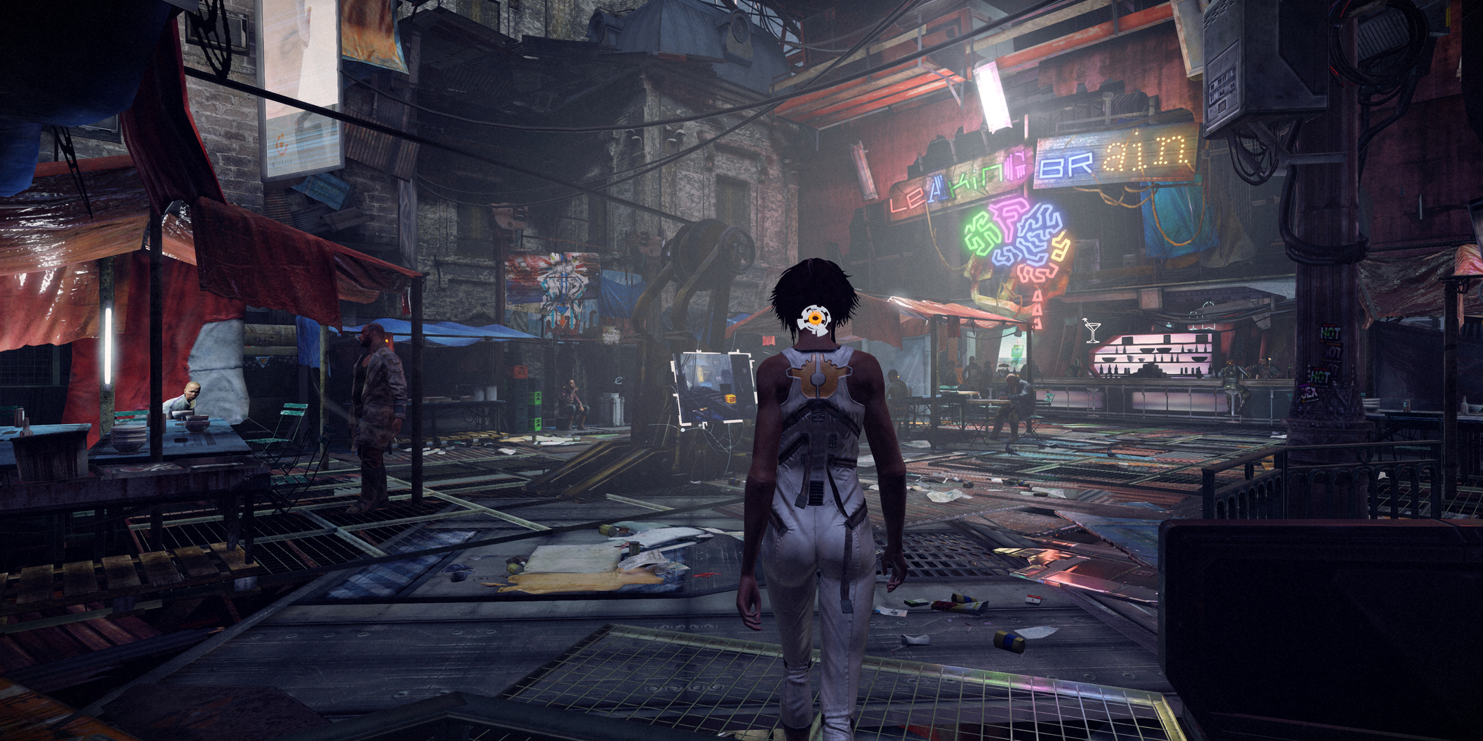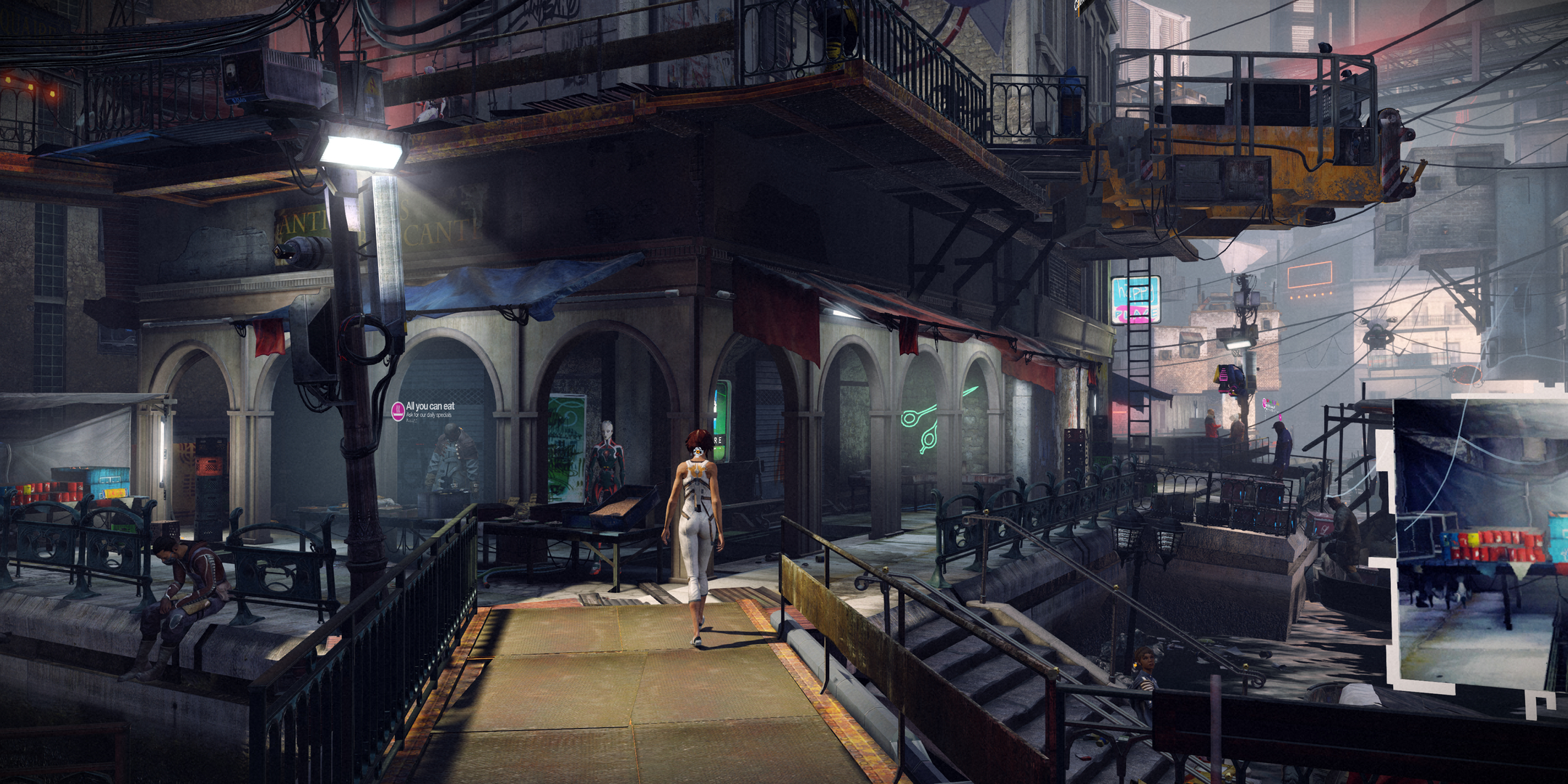 Stéphane Beauverger wrote:In Neo Paris, in the near future, most inhabitants are equipped with a plug at the back of their necks allowing them to exchanged computerized memories with other people. Memory hunters are able to erase and steal those data. The player character, Nilin, is one of them, but when the game starts, she wakes up, amnesiac, in the city's low-ends. She is peculiar in that she's able to modify memories by moving objects around. Using the left analog stick as a clock hand, the player can go back in time and pause to change elements, so that the memory is modified without anybody noticing. Those phases of memory hacking are called memory remixes.