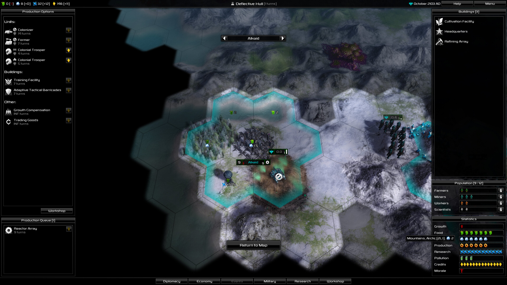 Expand your colonies with new cities, ensuring that you manage production whilst keeping the population happy. But remember the more you expand your borders the closer you get to other factions’ borders, so diplomacy must also be incorporated into your strategies.
