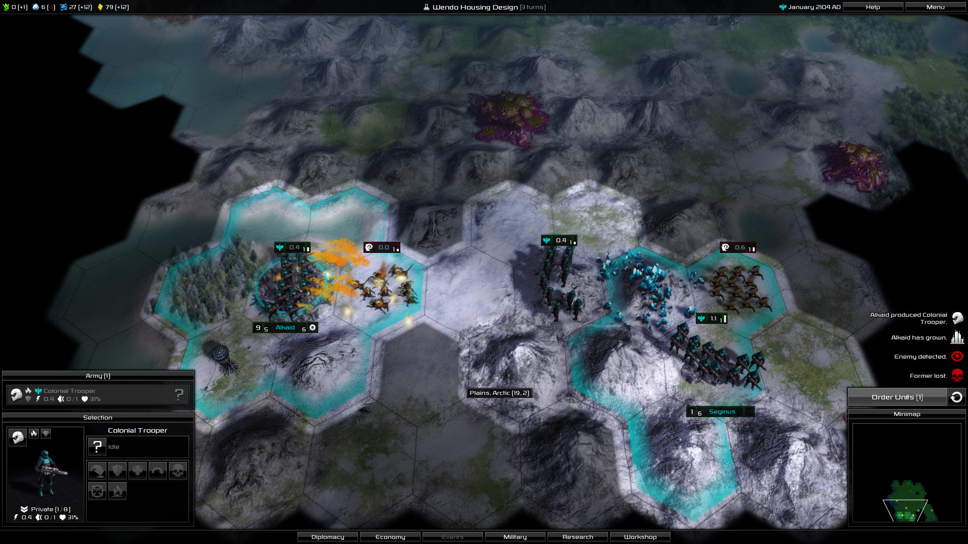 First of all, the economy works substantially different from other 4X games I’ve played. Well, at least in the particulars. The production model is more dynamic, more global, and will necessitate a bit more of micromanagement from your part, since now production is not only a function of potential resources, and population allocation (labor allocation), but also a great deal about stock management. And since the stock depot is global, it may have an effect on every cities’ production.