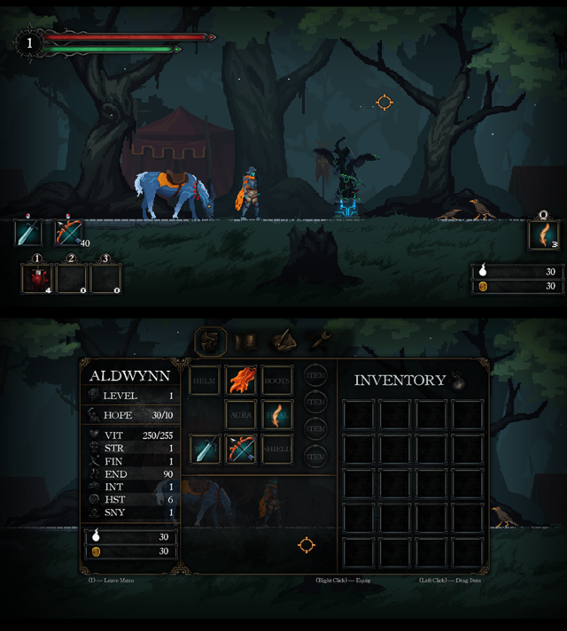 Death’s Gambit is a challenging 2D action RPG, where you explore an alien medieval planet filled with beasts, knights, and horrors. It’s a nonlinear open world game, gated by epic bosses that test your mettle and force you to think outside the box. Several bosses and roaming creatures require you to climb them and fight while on the shoulder of giants.