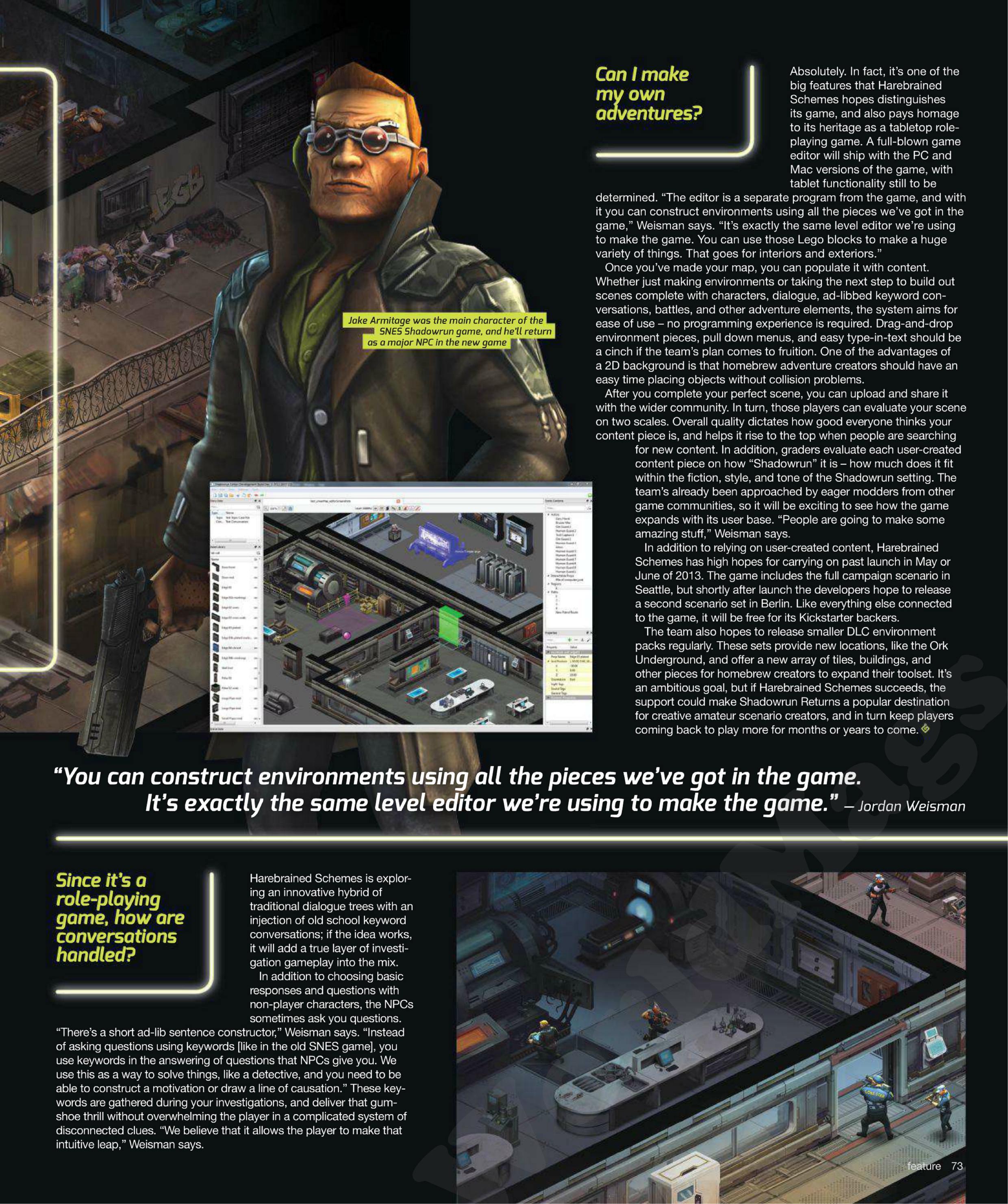 Robert Purchese wrote:Harebrained Schemes has announced that Kickstarted game Shadowrun Returns will be released in June, which isn't very far away at all.