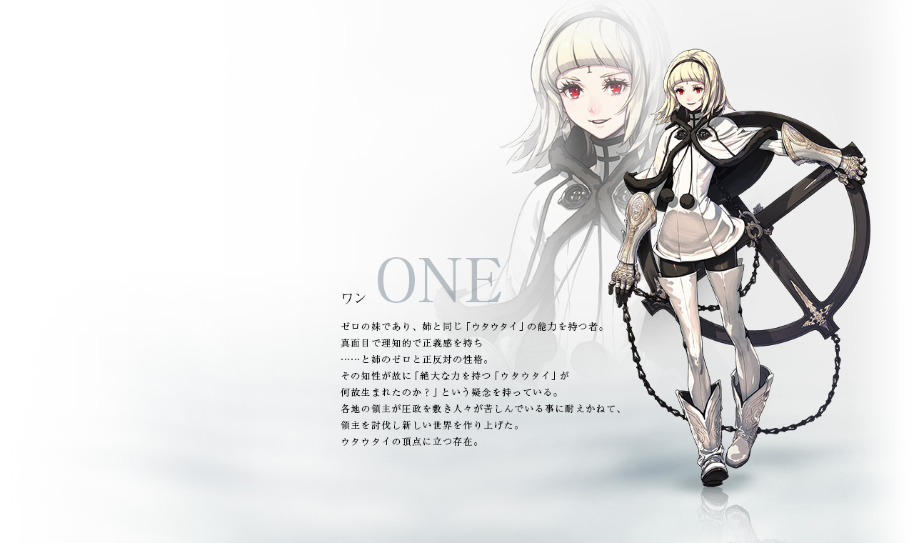 As previously detailed, the game stars Zero, an Utautai gifted with the ability to manipulate magic through song. She has a hostile relationship with her sister One, also an Utautai. Zero’s goal is to kill all of the Utautai, but One strives to bring peace to the world.