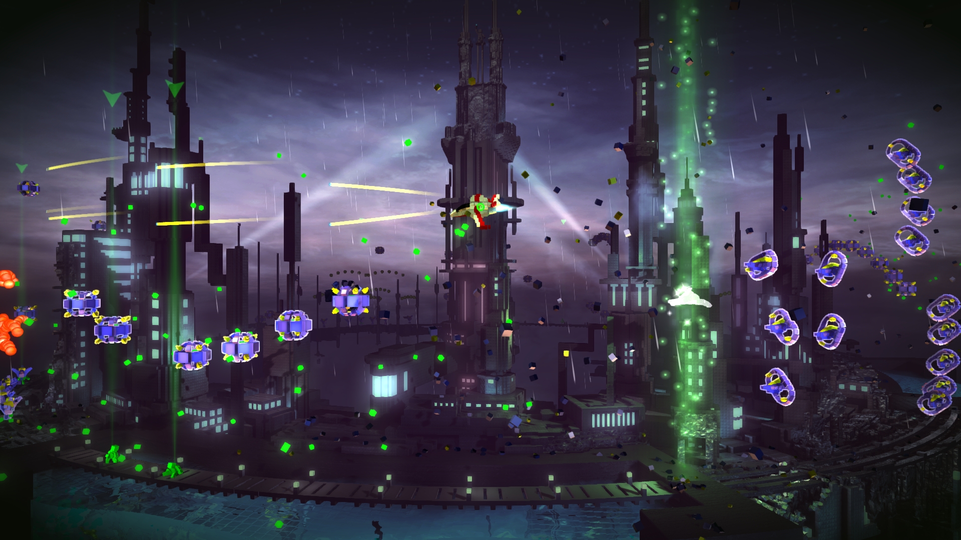RESOGUN is an intense, fast-pace shooter that expands our love for the genre and represents a sort of culmination of all our expertise, both technical and gameplay-related. The cylindrical gameplay is closer to old school 2D shooters, and one interesting side effect of that is that the world has gravity now. You actually expect things to fall down, there are ground enemies… these elements completely change the playfield compared to the Stardust series.