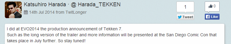 Post by TEKKEN PROJECT Game Director / Chief Producer