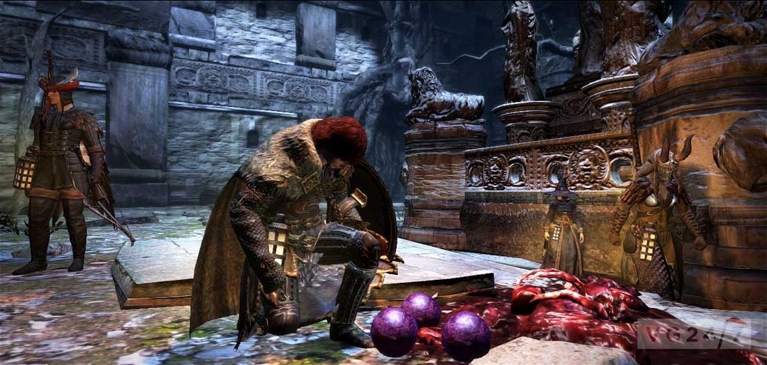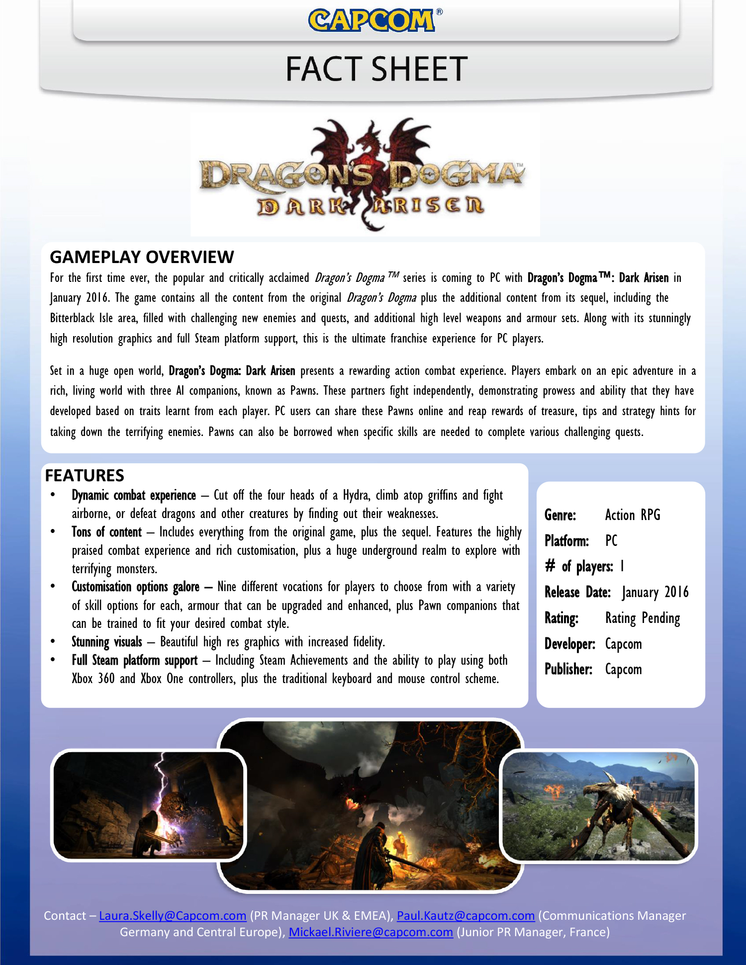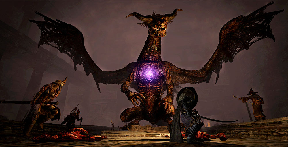 Action-wise, Kobayashi contends that Dragon's Dogma, despite being a first stab at an RPG, preserves the ethos that pervades Capcom's other, more action-focused, franchises: "For example, if you grab onto a gryphon, and the gryphon flies off, as long as you're still holding on, you can continue that battle in the air and bring it down that way. And you can do things like hold an enemy while your pawns attack them. You can grab enemies and throw them off cliffs. That action element, I think, separates Dragon's Dogma from a lot of the other fantasy games."