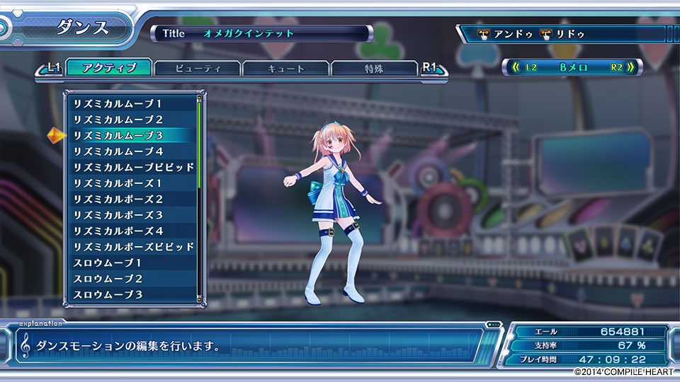 • Dance or die!: Create performances for your idols and share them with the PlayStation®4 Share function! You can build each routine, move by move, and even use the PlayStation®4 Camera to project yourself into the performance, as well as the Move controller to add special effects! The better your shows, the more moves you’ll be able to pass onto your idols!