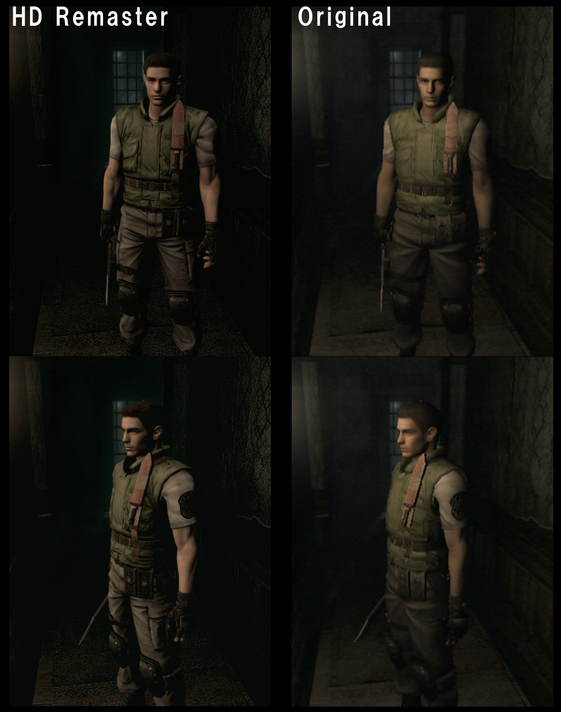 The Resident Evil remake includes "additional enhancements" that will make it the "definitive" version, Capcom says in a post today on its blog. Character models and backgrounds have been improved, and there is a "scrolling" camera that will help integrate the original game's 4x3 presentation into a 16x9 view. This means that when you move Chris or Jill out of the frame, the view will "smoothly" scroll along with you, Capcom says.
